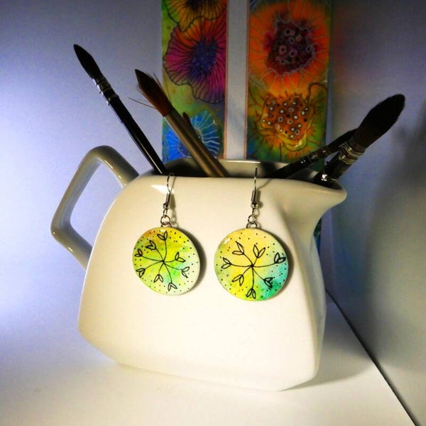 Précieuses boucles d'Oreilles en Aquarelle et dessins Vintage, résinées avec amour.