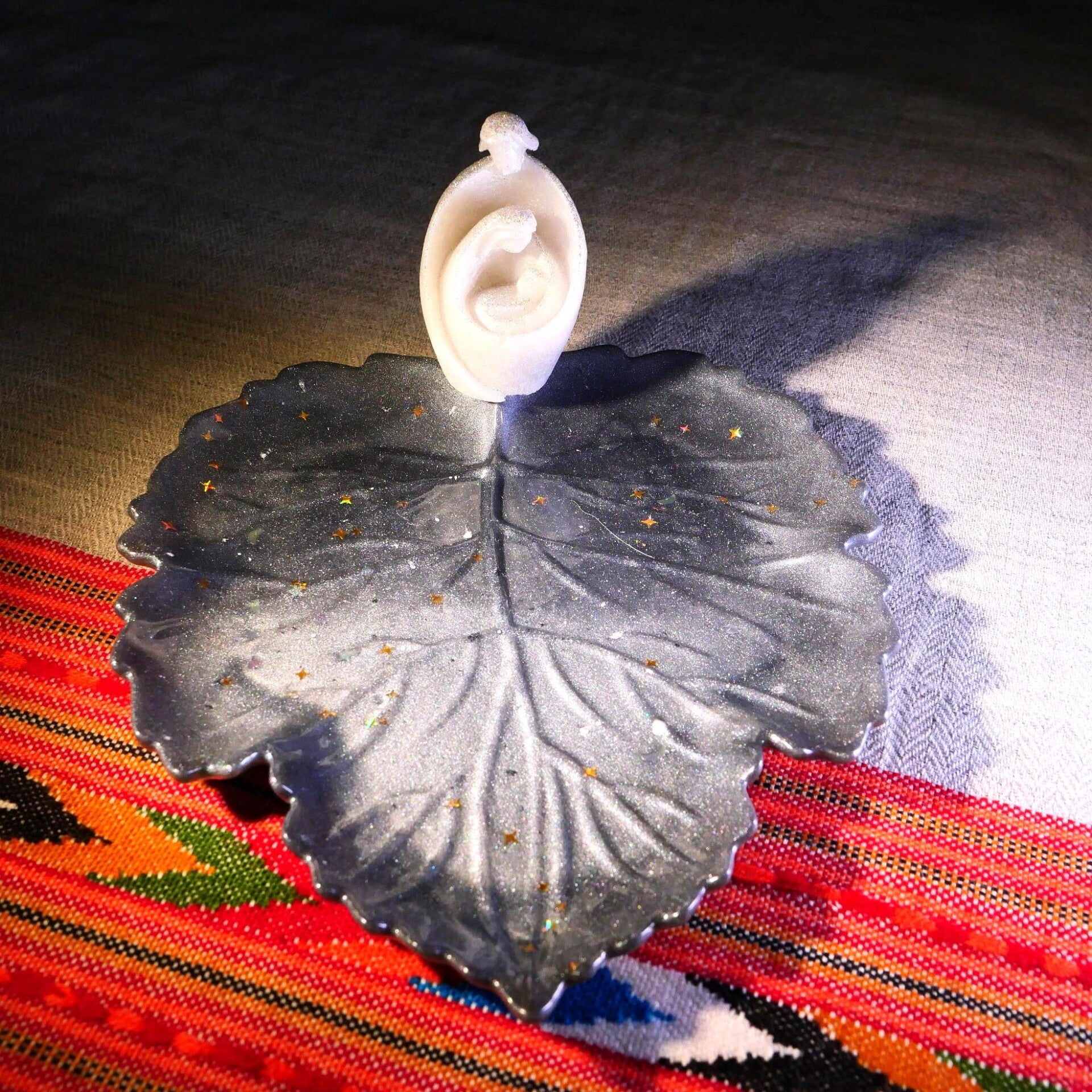 La croix du Christ est réalisée selon l'inspiration,donc, peut être différente pour chaque repose chapelet, ce qui en fait un objet unique.
